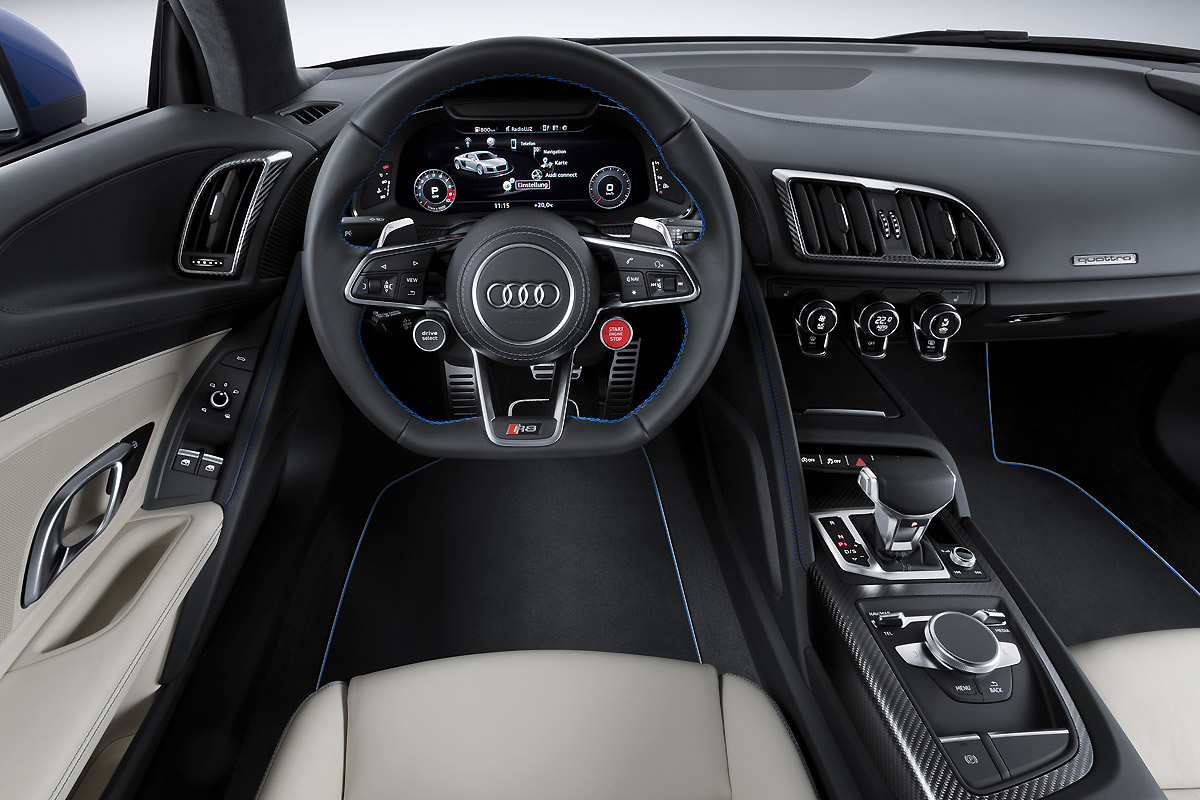 新一代R8車內風格以前代為基礎,並融入新一代TT的設計手法,與Audi對於跑車產品的詮釋。