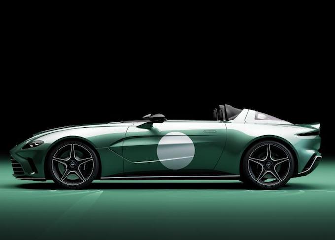 外觀上, 新車前格柵採用了Aston Martin標誌性的大嘴式設計,中網則配以橫條幅的緞面銀裝飾。車身側面,整車採用了標誌性的Speedster車身形式,使用了五輻式21英吋帶中央鎖止的輪圈,其表面呈緞黑色,並經過機械加工搭配有拉絲金屬的造型點綴。特別版車型將可選擇薄荷綠的「Aston Martin Racing Green」車漆顏色,並同時會增加「Clubsport White」的白色圓形塗裝在新車前發動機艙蓋與車門側面上,整體搭配將融合復古和現代的氣息。