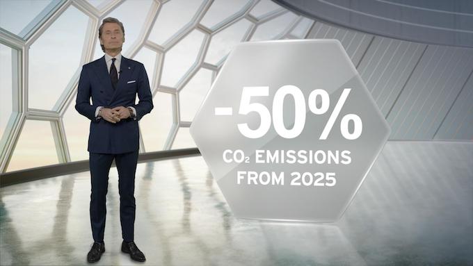 混合動力轉型(2024年底):2023 年,林寶堅尼將推出首款混合動力量產車型。到2024 年底,林寶堅尼的所有產品線均將實現電動化。保證卓越的性能表現和純正的林寶堅尼駕駛體驗仍然是工程師和技術人員研發新技術時的重點,而輕量化碳纖維材料的應用將是平衡電動化 所增加重量的關鍵。公司在這個階段的內部目標是到2025 年初將產品的二氧化碳排放量減少50%